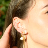 These delicate hoop earrings feature a 24k gold-plated bronze base with a dainty baroque design, completed with a 10mm lustrous suspended freshwater cultured pearl. Their delicate look makes them perfect for everyday wear, adding a touch of sophistication to any outfit. These earrings also make a thoughtful gift for a loved one, whether for a birthday, anniversary, or just because!