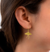 Elevate your look with these 24k Gold Plated .950 silver flying saucer drop earrings. Handmade in Colombia, they're inspired by extraordinary accounts of people's experiences with aliens and part of our unique Historical Jewelry Collection.