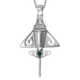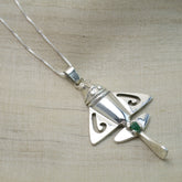 Quimbaya Flyer #3 .950 Silver 1.7" Pendant Necklace with Genuine Raw Colombian Emerald (Bottom)