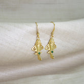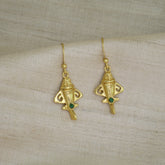Quimbaya Flyer #3 Real 24k Gold Plated 1.5" Dangle Earrings with Genuine Raw Colombian Emerald (Bottom)
