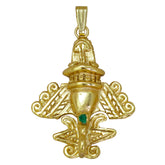 Quimbaya Flyer #4 Real 24k Gold Plated 1.3" Pendant Necklace with Genuine Raw Colombian Emerald (Bottom)