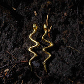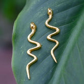 Lightweight earrings designed in a striking zig-zag pattern, resembling the graceful movement of a snake. Handcrafted and plated with 24k gold offering a beautiful, radiant finish that pays homage to ancient craftsmanship.