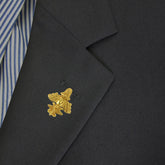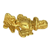 Introducing the Quimbaya civilizations military clutch lapel pin! This stunning piece is a reproduction of a pre-Columbian museum ornament, and is part of the Golden Flyer Jewelry Collection. It's been handcrafted with 24k gold plating in Colombia, and is a true work of art. Golden Flyer #4