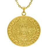 Aztec Solar Calendar 24k GP Pendant Necklace Multiple Sizes