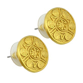 These beautiful gold circle disk 24K gold-plated circle drop earrings inspired by preColumbian Aztec symbols. Handcrafted in Colombia.