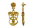 24K gold-plated Precolumbian Cauca bird on a half-moon dangle earrings. Museum reproduction. Handcrafted in Colombia.