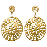 Introducing 24K Gold Plated extra large disk Precolumbian dangle earrings inspired on the Sinu Culture's goldwork. Museum reproduction. Handcrafted in Colombia.