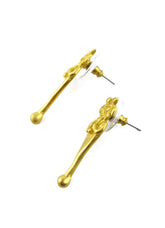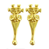 These exotic elonged drop earrings resemble an anthropomorphic figure. Earrings are 24K Gold Plated and handcrafted in Colombia. .