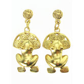 Dangle Earrings resembling Tairona frogs with spirals on their heads. Frogs were symbol of fertility for the Pre-Hispanic Cultures. Spirals were long life charms for the preColumbian Cultures.