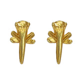 Adorable 24K gold plated Precolumbian small frog with long tale earrings from the Tairona Culture. Frogs and toads are associated with fertility since Pre-Hispanic times.