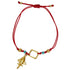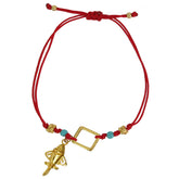 Bohemian style dark red adjustable cord charm bracelet. Accented with compressed Turquoises and 24k GP pre-Columbian style beads. 24k GP pre-Columbian reproduction ornament from the Quimbaya-Tolima cultures. Ancient Aliens Golden Flyer jewelry collection. Handcrafted in Colombia. Golden Jet model ZF003™