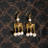 These beautiful dangle earrings are inspired by the Crotalia earrings that were very common in ancient Roman times as documented in the Fayum mummy portraits. Earrings are 24k gold plated accented with four white-ish freshwater cultured pearls. Handcrafted.