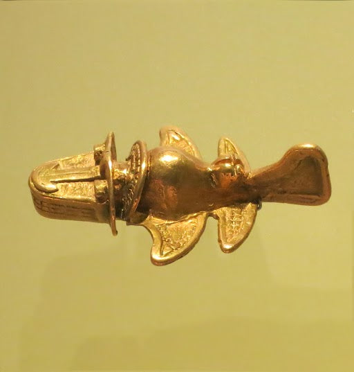 This product is made in Colombia, where the original ornament was found. The cast was elaborated using the same technique used by the ancient goldsmiths preserving the historical context. Products are then handcrafted by artisans specializing in Pre-Columbian jewelry.