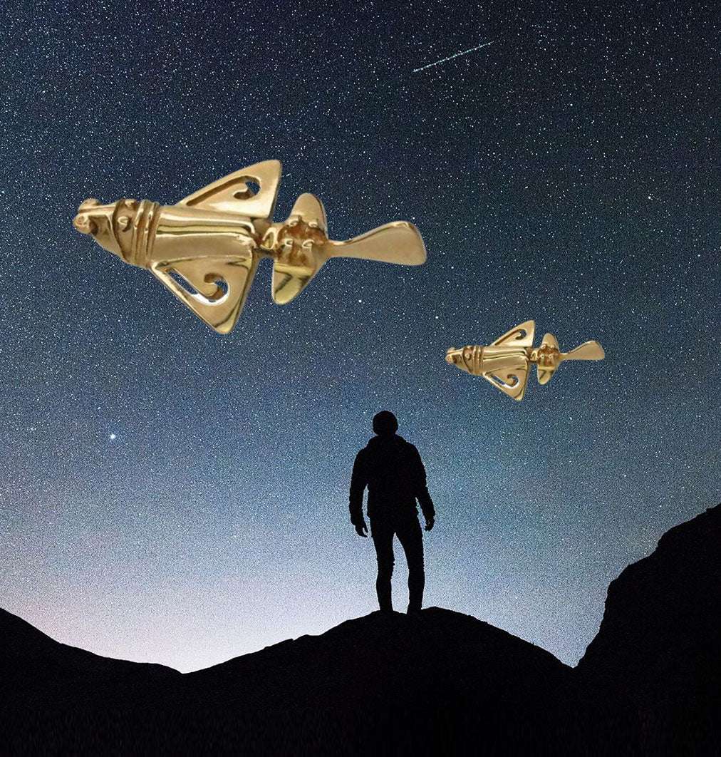 Golden Jets is a celebration of the curiosities of history, spirituality, and nature—a unique legacy stemming from an equally vibrant culture. We hope you enjoy wearing and displaying these stunning flying pieces with pride.