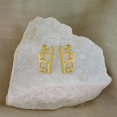 Stunnig drop earrings resembling classic preColumbian Sinu monkey ornaments from the Narino culture. Earrings are 24K Gold Plated and handcrafted in Colombia.